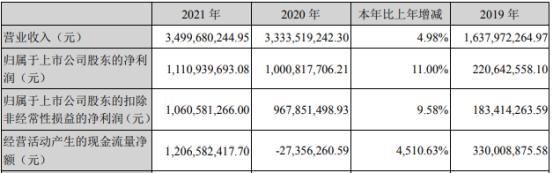 挖贝网4月7日,高德红外(002414)近日发布2021年度报告,报告期内公司实现营业收入3,499,680,244.95元,同比增长4.98%;归属于上市公司股东的净利润1,110,939,693.08元,同比增长11.00%。