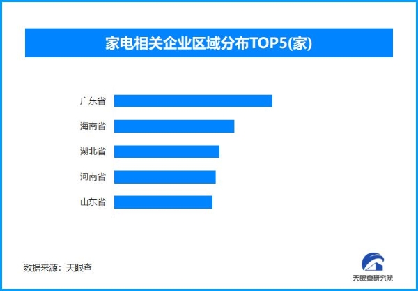 从区域分布来看,广东省、海南省、湖北省家电相关企业数量位居前列,分别为超过212.5万余家、161.7万余家和141.6万余家。